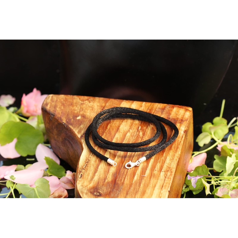 - Metal Stamp ; 925 sterling silver Black Silk Cord Necklace thin rope ,with sterling silver lobster Clasp , Sterling silver is hypoallergenic and nickel-free jewelry a great choice for individuals with very sensitive skin. lobster-claw clasp with spring mechanism for sturdy security.