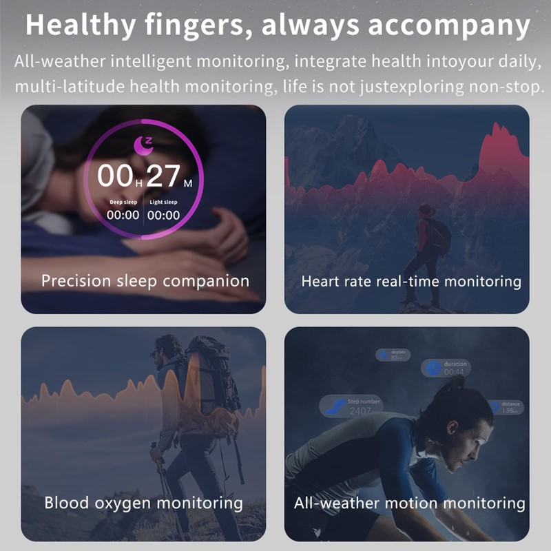 - Health ring with heart rate monitor and sleep monitor. You can display your heart rate and blood oxygen during the day in the app or monitor your heart rate and blood oxygen manually in real time. The sleep monitoring function can identify your sleep time, including wake time, deep sleep and mild sleep. The ring can analyze your sleep quality using this data and help you maintain good sleeping habits.