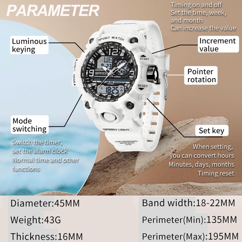• Fashion Sport Watch: Adopt fashion outlooking case and sporty dial, it's versatile and look good on any woman. Digital and Analog Dual Time Zones Design - easy to read time and make the dial looks more layered. Certainly a cool sports watch and catch people's eye easily.