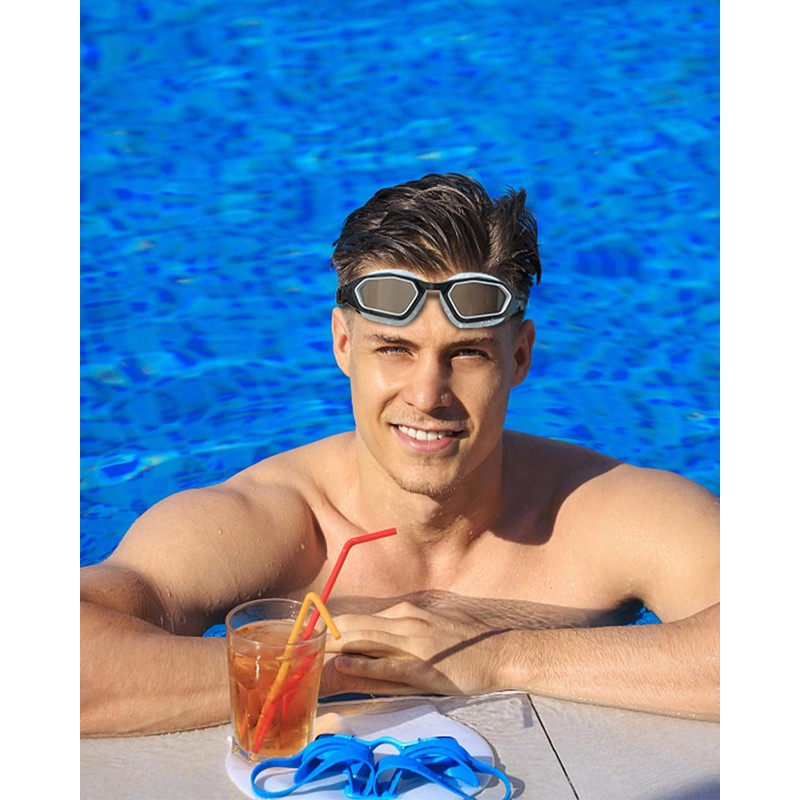 • 【Advanced Polarized Lenses】The swimming goggles feature high transmittance polarised lenses made of anti-fog, UV coated and impact resistant PC material. They filter out irregular light, eliminate reflections/glare, and block harmful light to ensure clear vision while swimming indoors and outdoors.