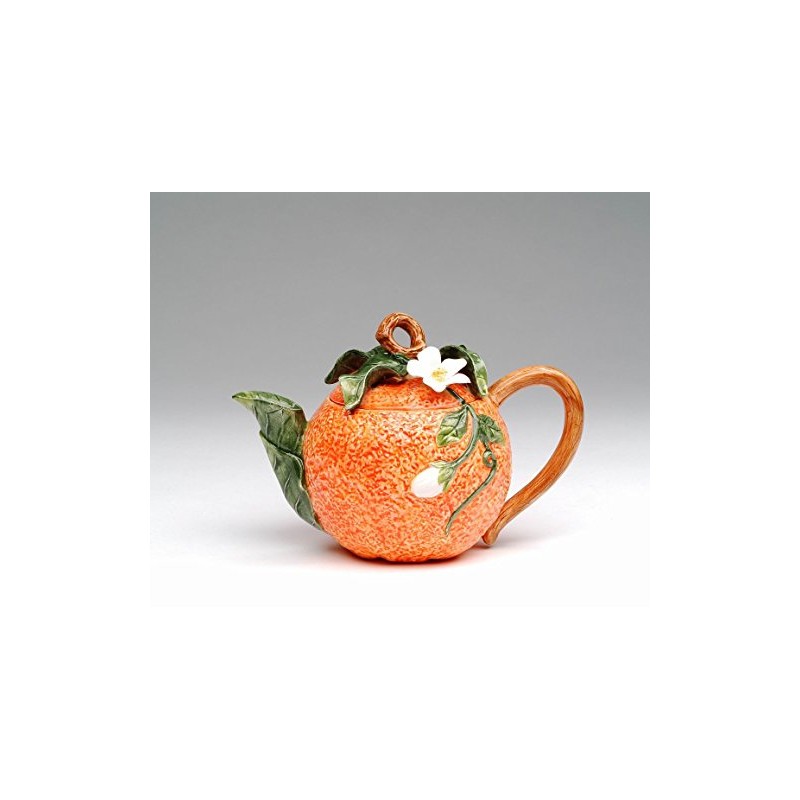 Fine Ceramic Fruit Orange & White ORange Flower Teapot 12 fl oz, 4" H