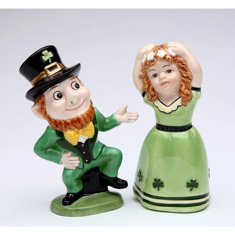 Fine Ceramic Irish Dancing Leprechaun and Girl Salt & Pepper Shakers Set, 4" H