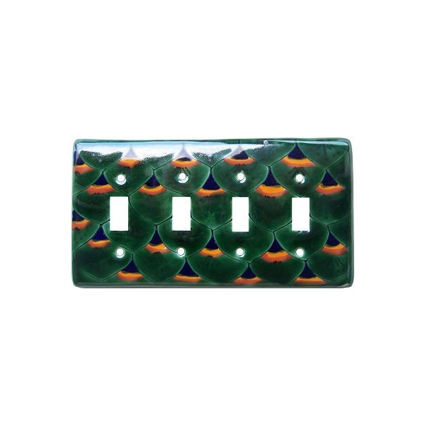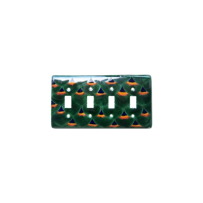 Fine Crafts Imports Peacock Talavera Quadruple Toggle Switch Plate