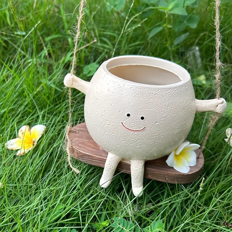 - Charming child-like design: the appearance of the swing flower pot is very unique, like a child sitting on a swing. With its unique face design and smiling expression, hanging flower pot adds a touch of fun and charm to your garden or room