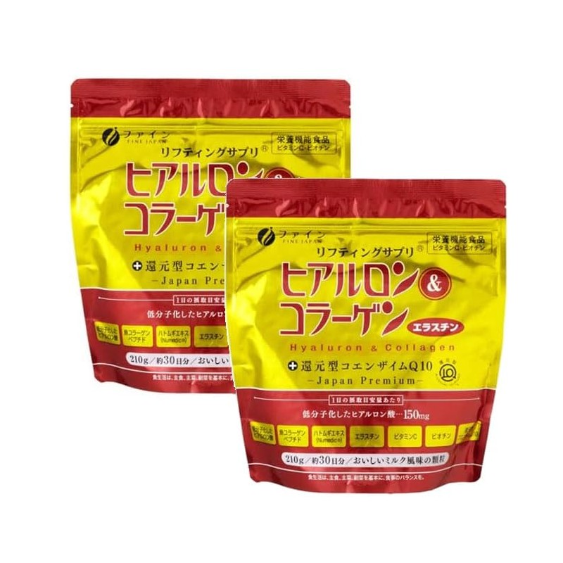 ファイン(FINE JAPAN) ヒアルロン&コラーゲン+還元型コエンザイムQ10 袋タイプ ハトムギエキス エラスチン 【2袋組】