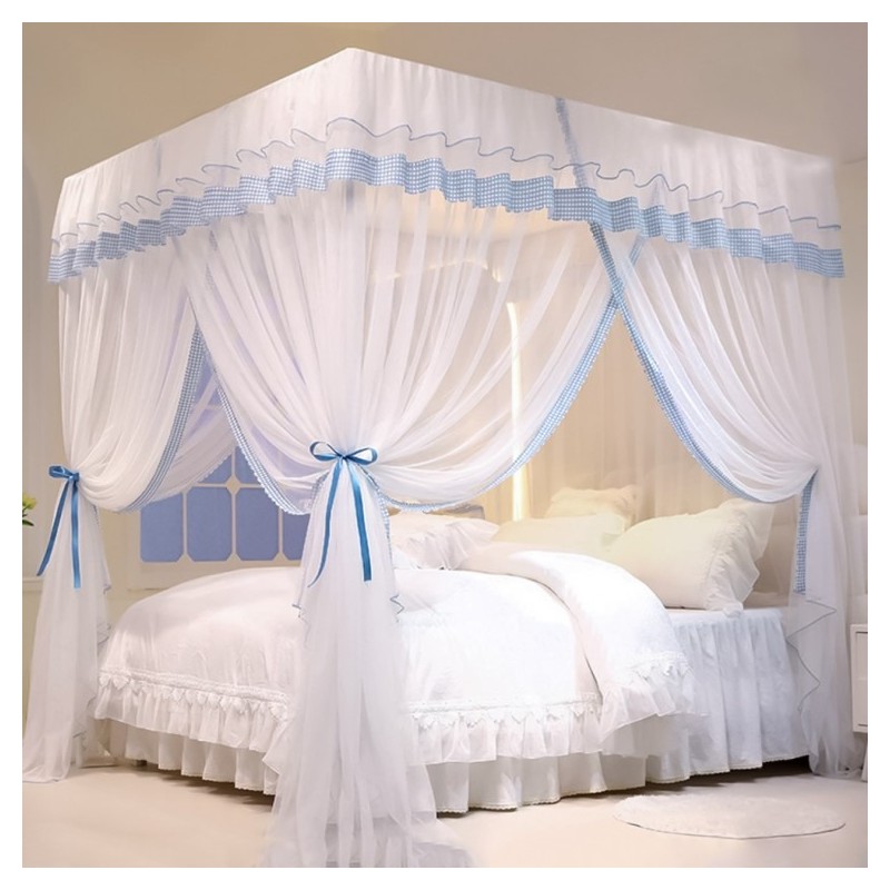 Fine Mesh Checkered Curtain-Style Bed Mosquito Net (180x200cm)(Blue)