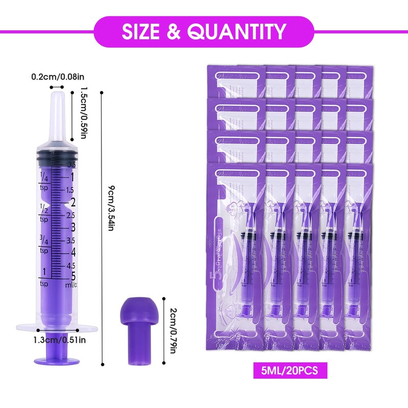 - 【Syringe Set】You can choose between two kits: ten 10ml syringes in purple; twenty 5ml syringes in purple. You can choose according to your need. With this kit, you have enough syringes on hand to cover your daily needs. The syringes are individually wrapped and sterile to ensure hygienic use.