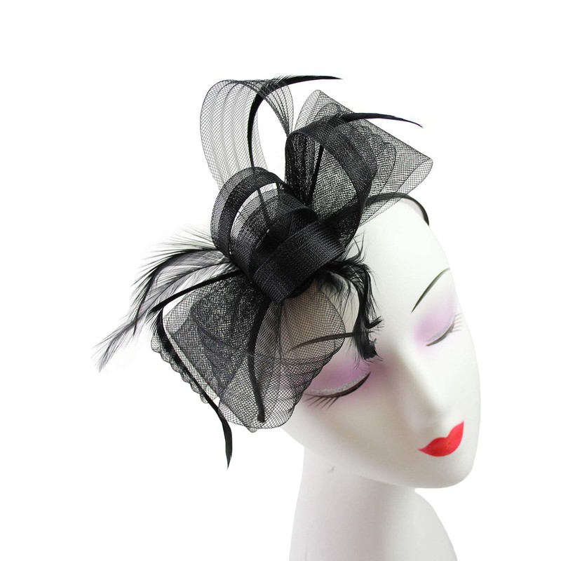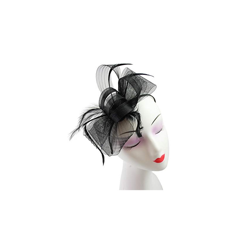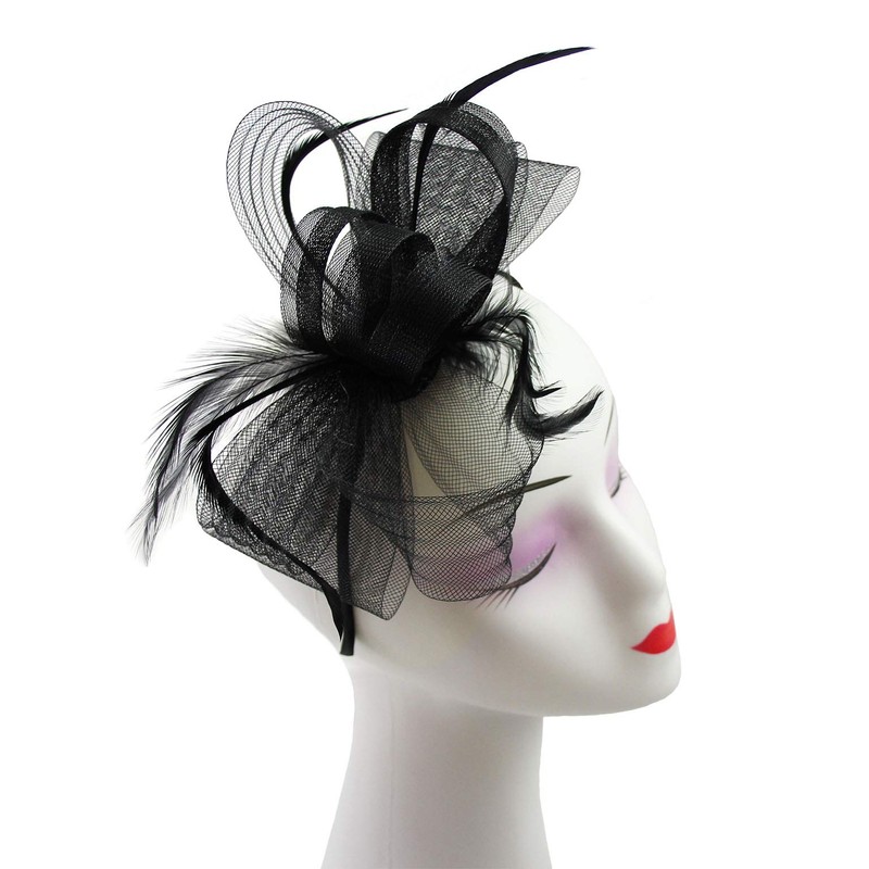 Finecy In Small Flower Feather Hat Fascinator Headband Clip Wedding Royal Ascot Party (Black)