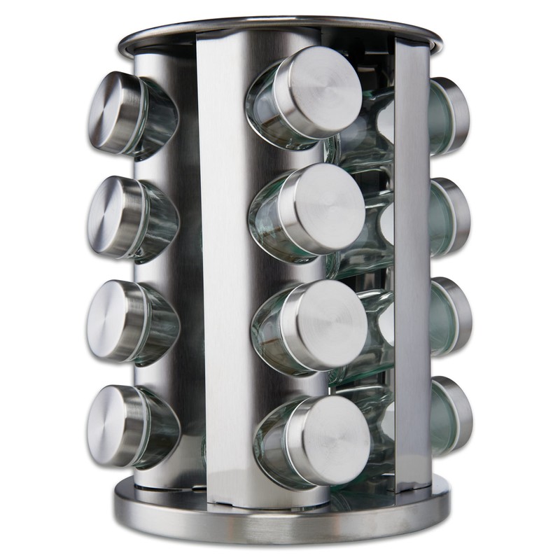FineDine: Stainless steel round spice rack 16 Pack