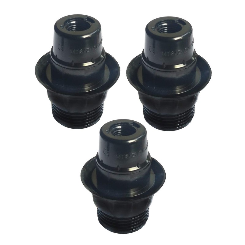 FINELED Small Edison Screw E14 Lamp Holder,3 Pack Bakelite Threaded E14 Pendant Socket & Lampshade Collar Ring (Black)
