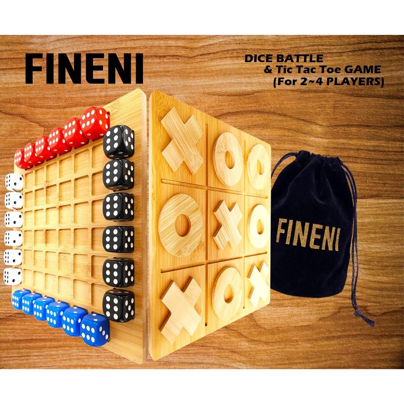 FINENI Dice Battle and TicTacToe Dual Sides Board Games, Wooden Coffee Table Games for Adults, 2~4 Player Bar Dice Games, Indoor Tabletop Game & 4 Players Wood Table Top Dice Game (Dual(2~4)/Log)