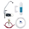 - Contains a saddle valve for feed water connection , 3metres of 1/4" ldpe tubing , inline taste and odour filter with built in 1/4" Push Fit Fittings a bracket and a black lever Chrome Long Reach filter tap