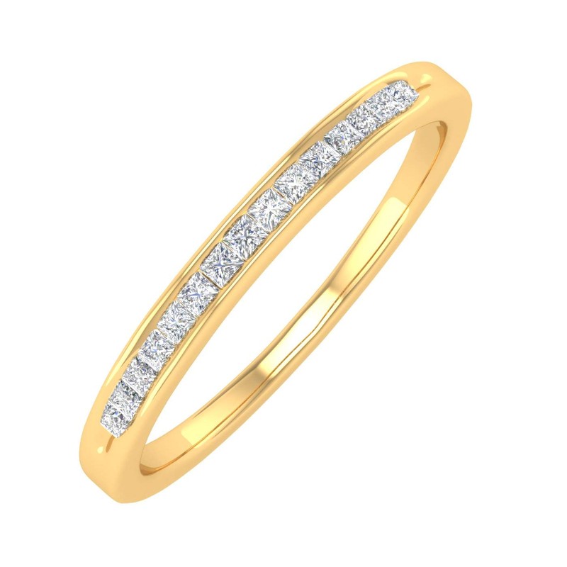 FINEROCK Channel Set Princess Cut Diamond Wedding Band Ring in 10K Yellow Gold (0.15 cttw) (Ring Size 7.5) (I1-I2 Clarity)