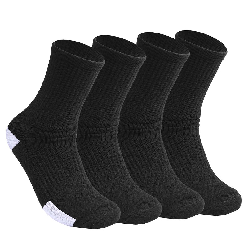 Finerview Elite Basketball Socks, 4 Pack Cushion Performance Crew Athletic Socks for Adult & Youth Kids