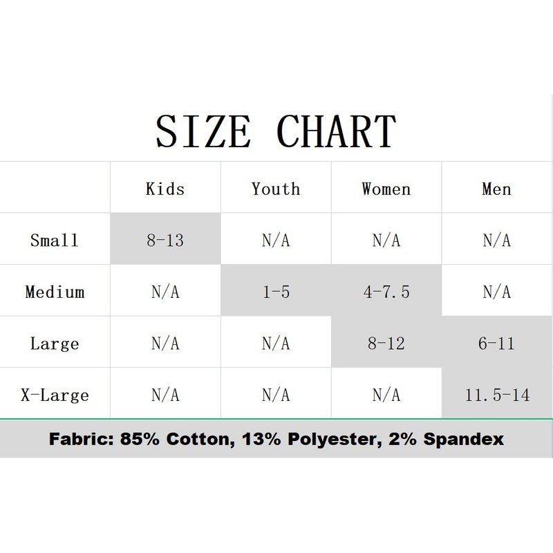 - Protective Socks: Soft and breathable,reinforced toe and heel, thick footbed, all can protect feet from impact, this athletic socks with Nylon blend specially provide superior comfort and support around arch and ankle. and hold up well after repeated washings. Size Small fits Kids Shoe Size 8-13; Size Medium fits Youth Shoe Size 1-5 or Women Shoe Size 4-7.5; Size Large fits Men Shoe Size 6-11.5 and Women Shoe Size 8-12; Size X-Large fits Men Shoe Size 12-14 and Women Shoe Size 13+