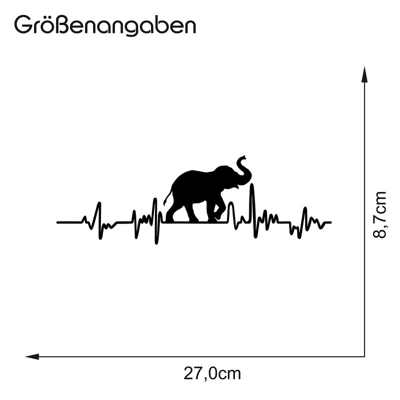 Finest Folia Finest Folia Aufkleber Herzschlag Tiere Breite 27cm Lifeline Heartbeat Deko Sticker Selbstklebend fr Auto Khlschrank Laptop Autoaufkleber K150 (Schwarz Glanz, 05 Elefant)