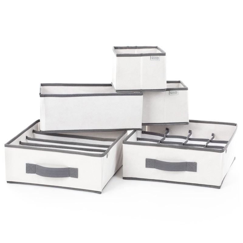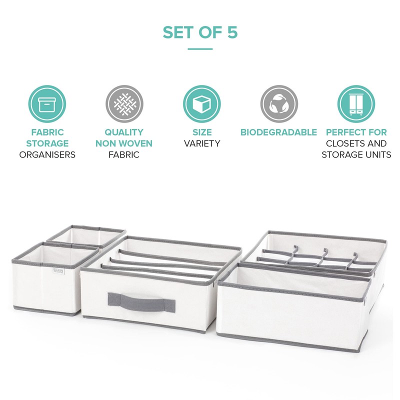 FiNeWaY 5pc Canvas Storage Box Organiser - Collapsible Multipurpose Space Saving Drawer Divider Cubes- Perfect For Wardrobe, Drawers, Desk, Clothes, Makeup, Bathroom, Stationary