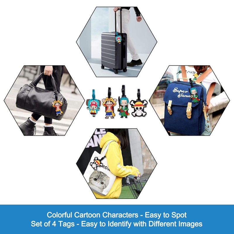 - Best Travel Set - 4 Pieces Pack Individually Wrapped Luggage Tags - One Piece ID Tag - Monkey D. Luffy, Tony Tony Chopper, Roronoa Zoro, One Piece Skull and Crossbones