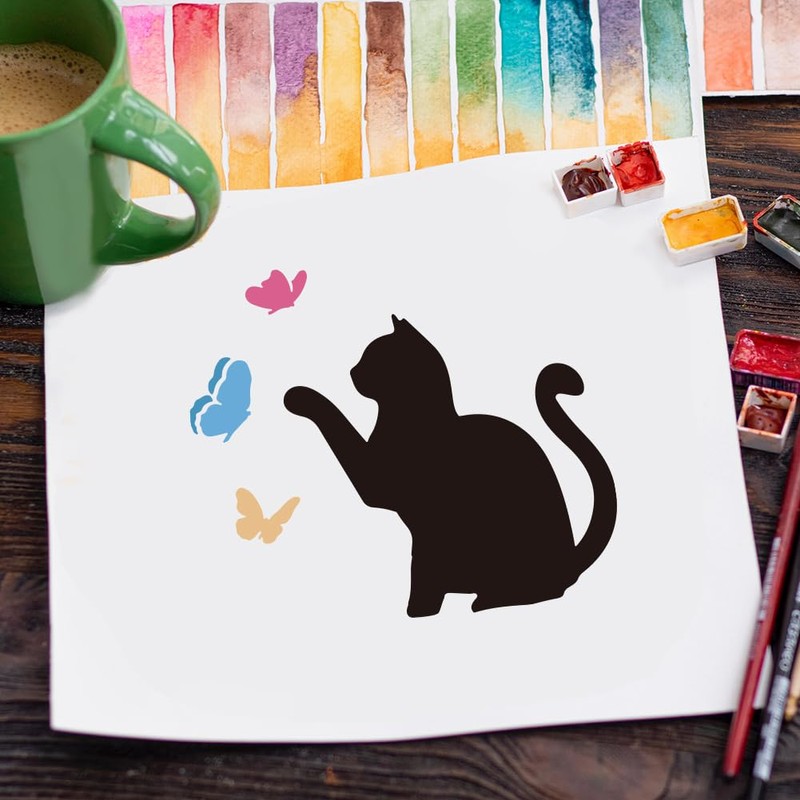 • Peeping Cat Pattern: Our animal themed templates have many cute cat patterns. On the stencil are many cute cat patterns, including cat pairs, cat with butterflies, moon, stars heart patterns. With these stencils, you can create DIY works for your home.
