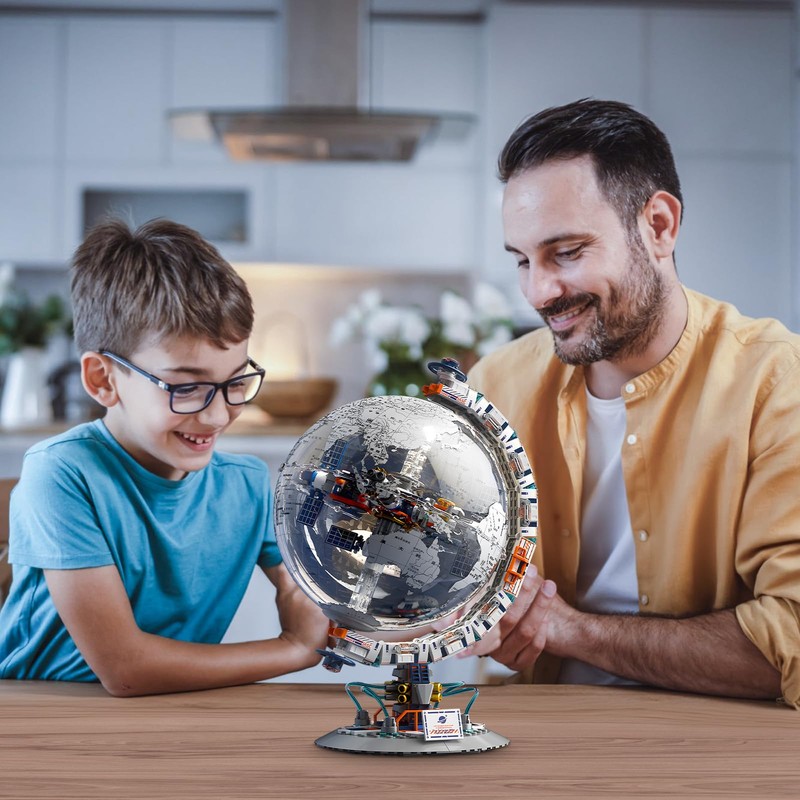 - [Creative Design]This 657-piece building block kit innovatively combines a space station with a globe.Not only can you view the entire world map on the rotatable sphere, but you can also admire the intricate details of the space station through its transparent casing.