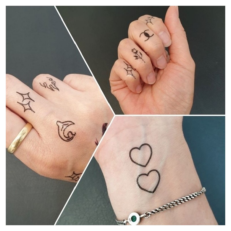 🎉 Add a playful touch to your look with these delightful finger sticker tattoos. Perfect for a spontaneous style statement, they bring instant fun right to your fingertips.