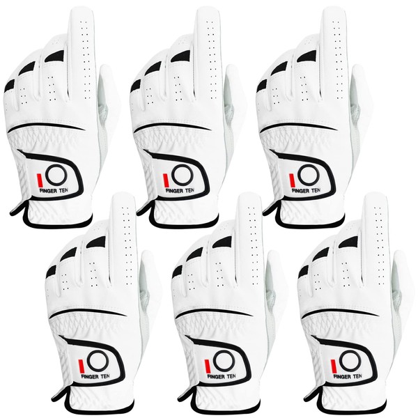 FINGER TEN Golf Gloves Men Left Right Hand Handed Golfer Value Pack (6 Pack, Medium/Large, Left)