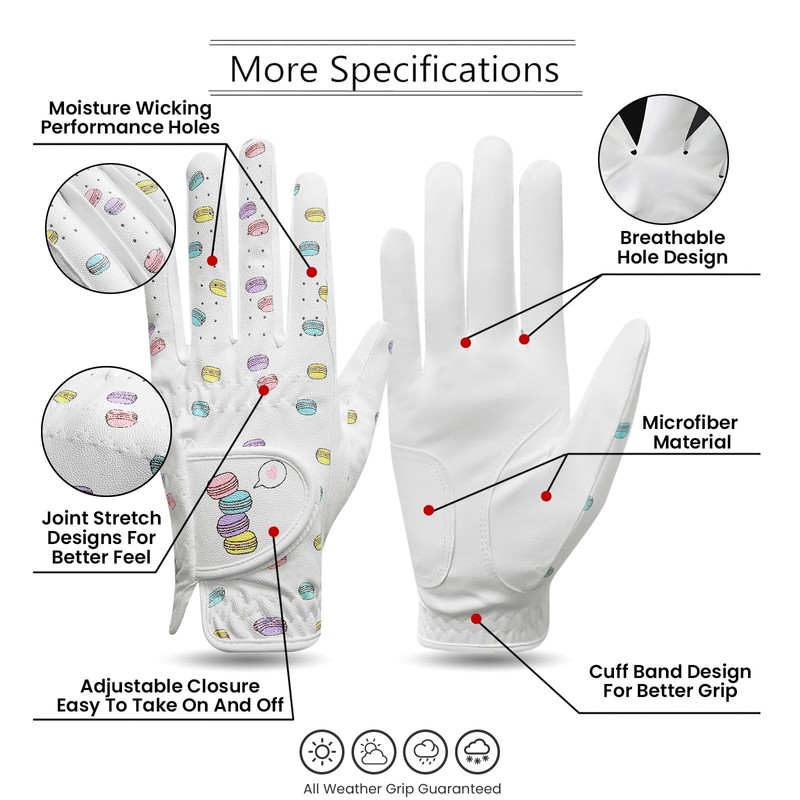 FINGER TEN Womens Golf Golf Gloves Left Hand Right Microfiber Extra Grip Breathable with Macarone Pattern,Ladies Golf Gloves Perfect Swing Fit Size S M L XL (White, X-Small-Worn on Left Hand)