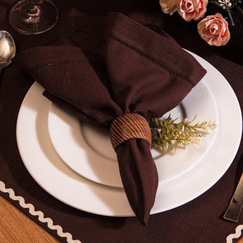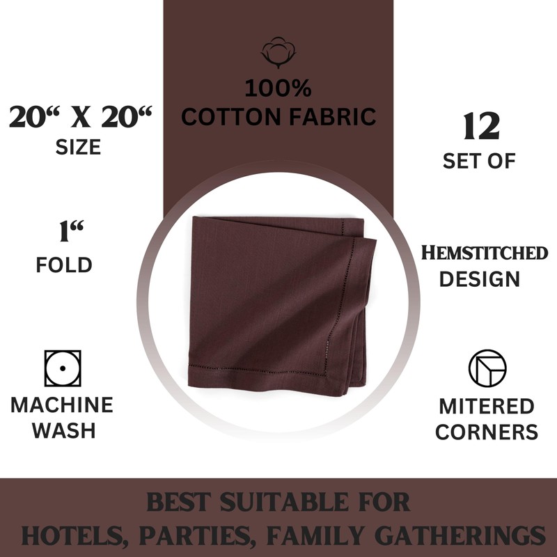 Fingercraft Cloth Napkins, Hemstitched Design Napkins Cloth, Everyday Use, Premium Quality Cotton Napkins Perfect for Parties Dinners Weddings Cocktail Christmas Set of 12, 20 inch Chocolate