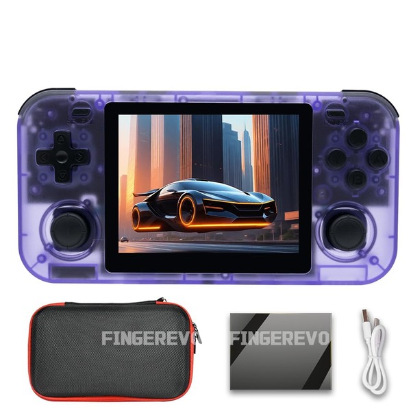 FINGEREVO O30S Handheld Game Console 3.5-in 640 * 480 IPS OCA Screen 3000mAh Linux-opensource RK3326 o30s with Portable Case Transparent Purple
