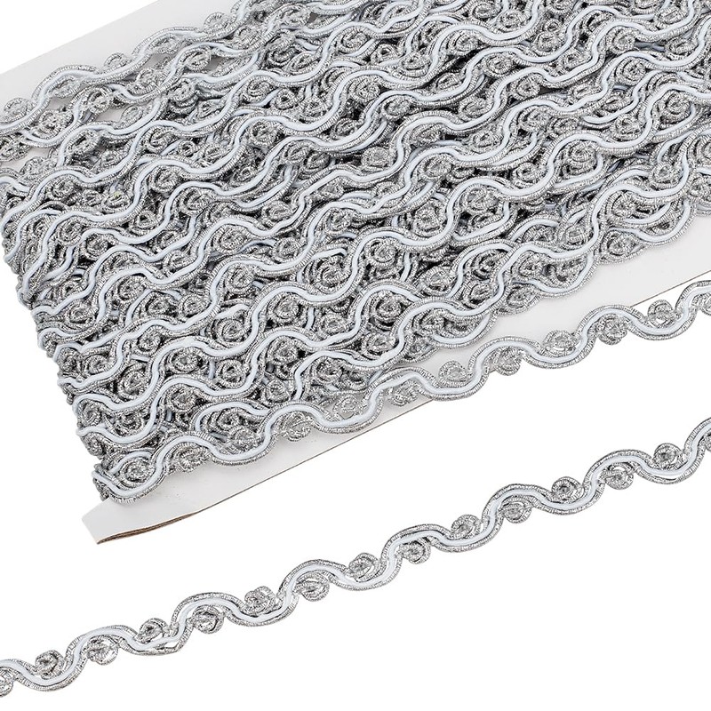 FINGERINSPIRE 21.3 Yard Silver S Wave Pattern Metallic Polyester Lace Ribbon 3/8 inch Wide Bling Silver Metallic Gimp Braid Trim for Costume Clothes Sewing Accessories Home Decoration