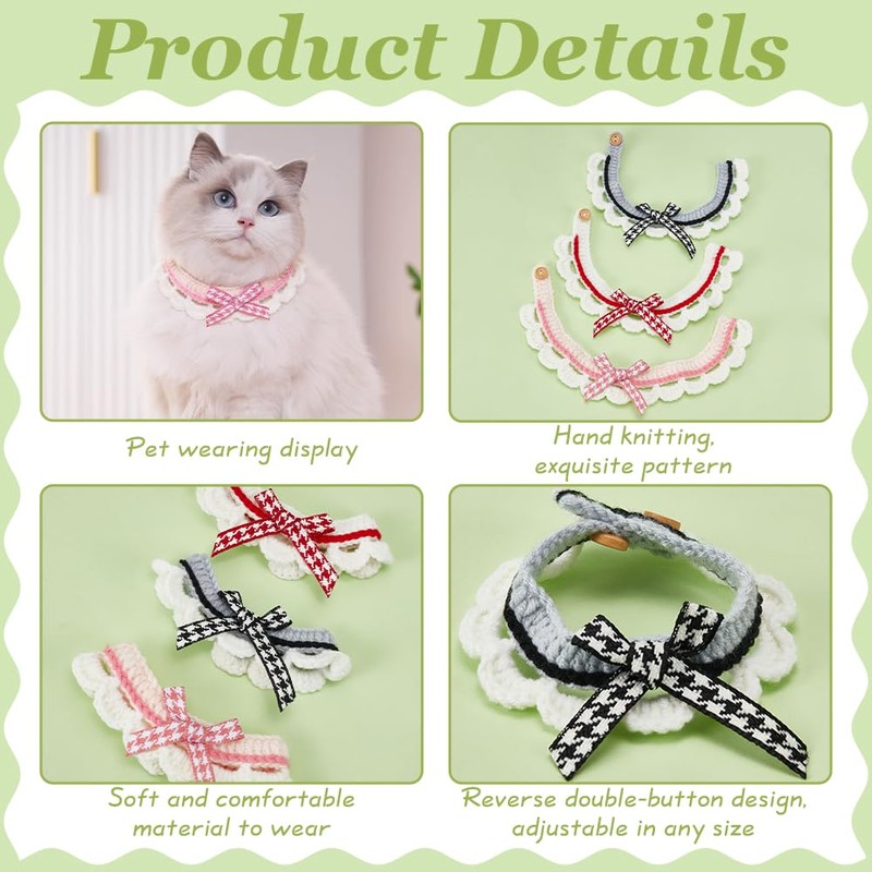 - Bowknot Cat Collar: Our cute cat collars have 3 colors - black, pink and cerise color. You and your cat are sure to get the color you like. In addition, each crochet collar has bowknot pattern which is beautiful and suitable for your cat to wear on the neck.