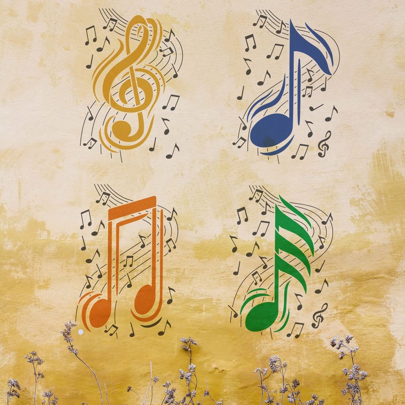 - 【4 Pcs Music Notes Stencils】You will get 4 pcs different style music notes pattern painting stencil. Size is 29.7x21cm/11.7x8.3inch. This is a good template for drawing or doodling. Perfect for your daily DIY making needs to decorate your home.