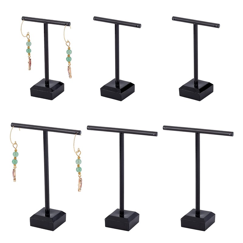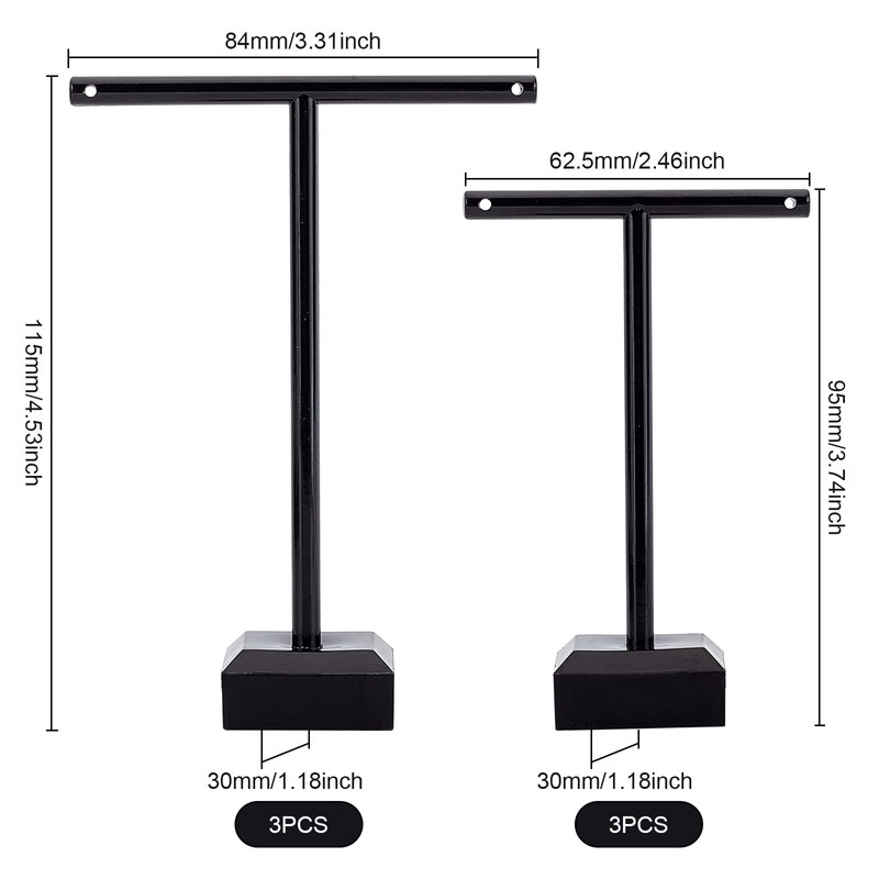 - 【Package Included】: 6 pieces T bar earring holders with black color and square base, including 2 sizes, large: (30 x 84 x 115 mm), small: (30 x 62.5 x 95 mm), 3 pieces/size, 2 holes on the T-bar, good for both stud earrings and earrings.