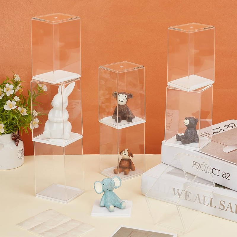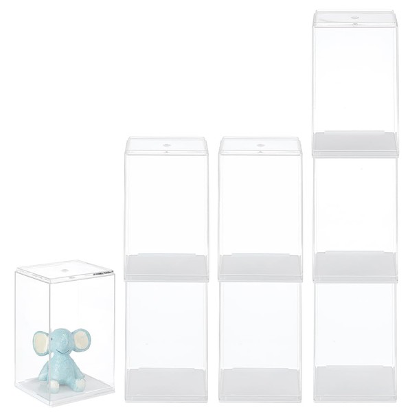 FINGERINSPIRE 8Pcs Figures Display Case 6.4x5.5x10.2cm Stackable Plastic Display Box Model Display Case with White Base Rectangle Clear Display Box Plastic Storage Showcase for Minifigures Collections