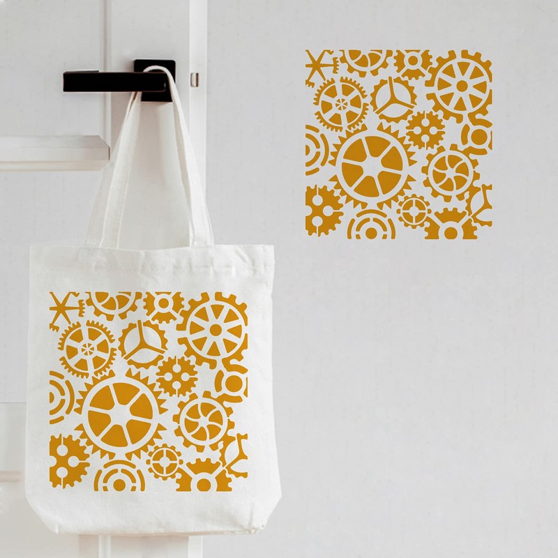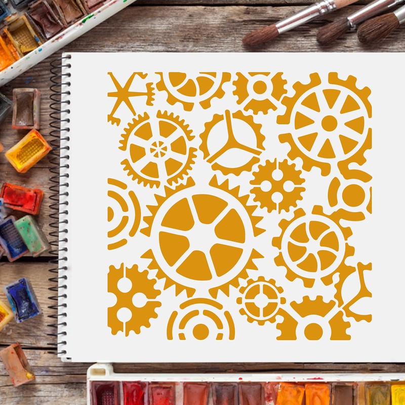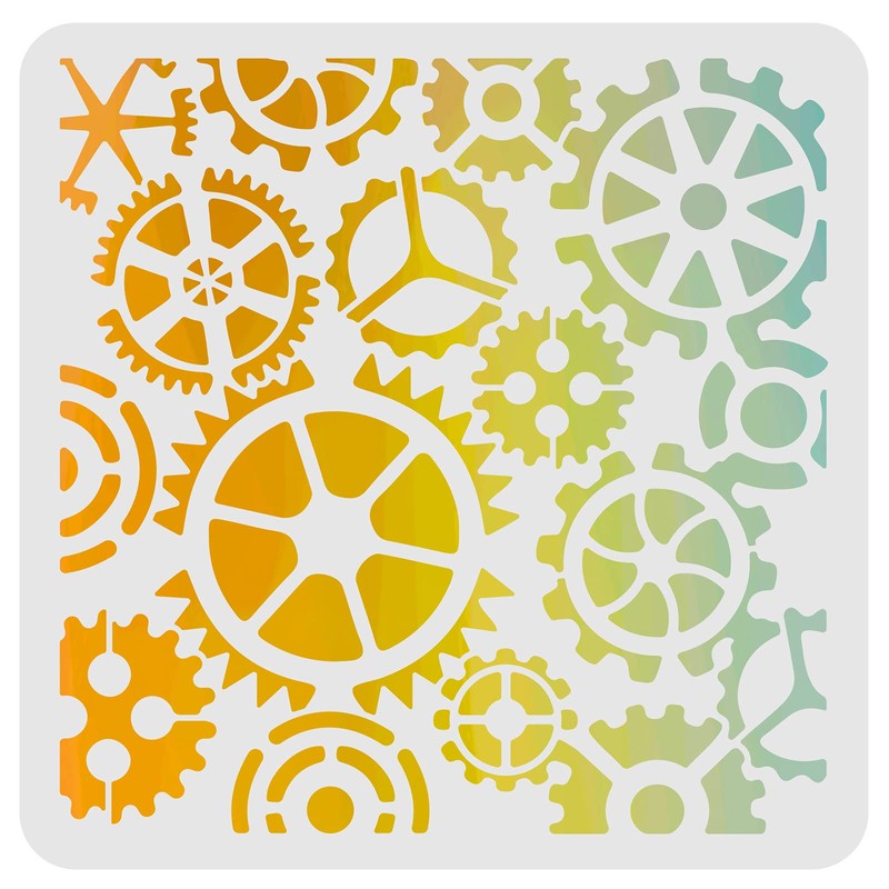 FINGERINSPIRE Gear Stencils Template 30 x 30 cm Plastic Gear Drawing Painting Stable Square Reusable Stencils for Painting on Wood, Floor, Wall and Tiles