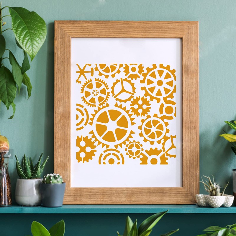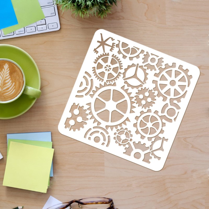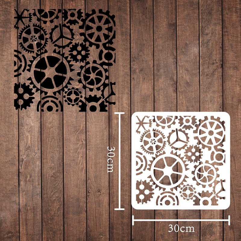 - Gear template: plastic stencil consists of gear patterns that add surprises and happiness to your life. Size: 30 x 30 cm.