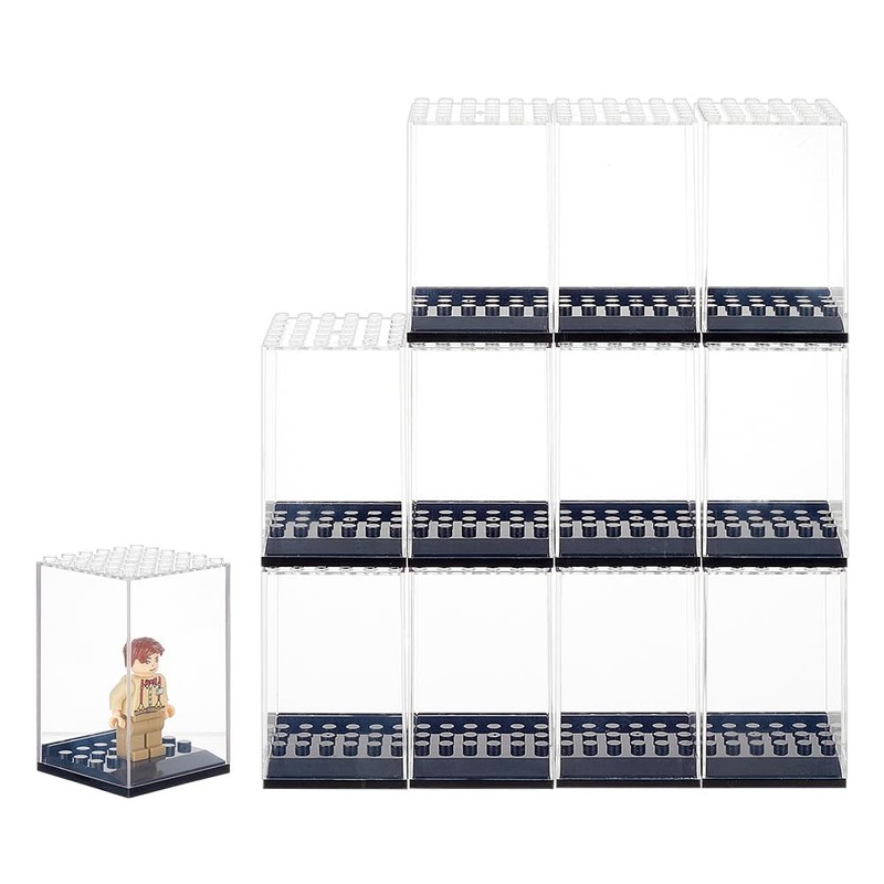 FINGERINSPIRE Pack of 12 Mini Figures Display Case 4.7 x 4.7 x 7.6 cm Stackable Model Display Case Acrylic Display Case with Base Black Building Blocks for Mini Figures Building Blocks Storage Gift