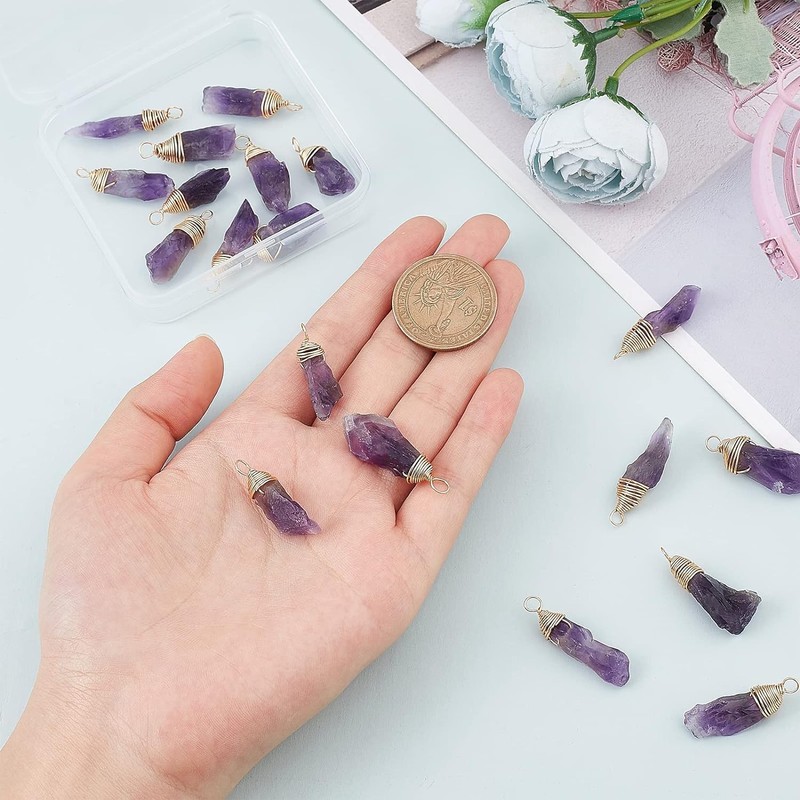 FINGERINSPIRE Pack of 20 Natural Amethyst Crystal Pendants Real 18K Gold Plated Wire Wrapped Amethyst Crystal Gemstone Pendants, Irregular Natural Gemstone Pendant for Jewellery Making