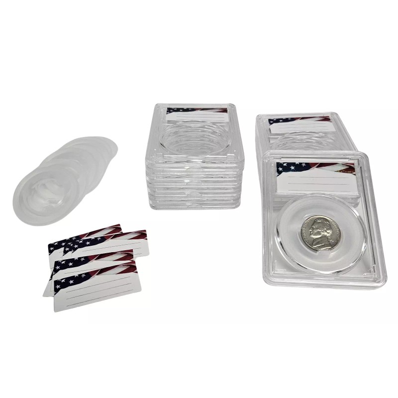 - Additionally, each 82mm x 62mm holder comes with a labeled insert, allowing you to easily identify and organize your coin collection. Whether you're a seasoned numismatist or a beginner collector, this coin slab holder offers a convenient and professional way to showcase your Jefferson, Buffalo and Liberty Nickels .