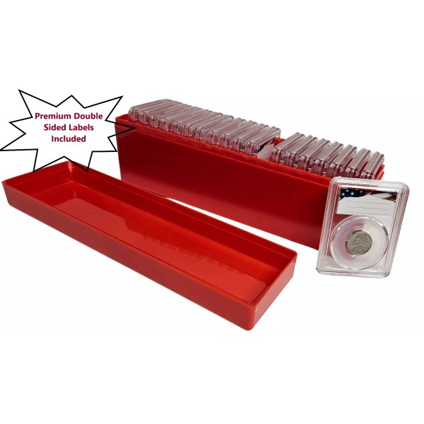 - What You Get: 20 Premium Scratch Resistant Acrylic Slabs. Plus 20 translucent sizing rings with Labels. The Red Storage Box Included accommodates PCGS, NGC, Anacs, ICG and many others.