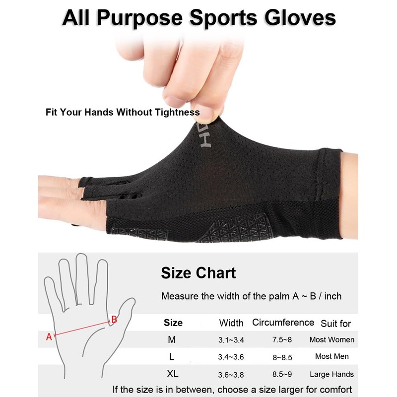 - All-Purpose Training & Fitness Glove - The universal half finger outdoor glove is suitable for various outdoor activities, such as workout, indoor rowing. NOTE, please refer to the Size Chart in the product picture to choose your size.