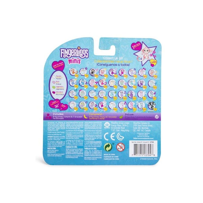 - Fingerlings Minis Series 1: Each Set Includes 1 Bracelet, 1 Charm & 2 Figurines