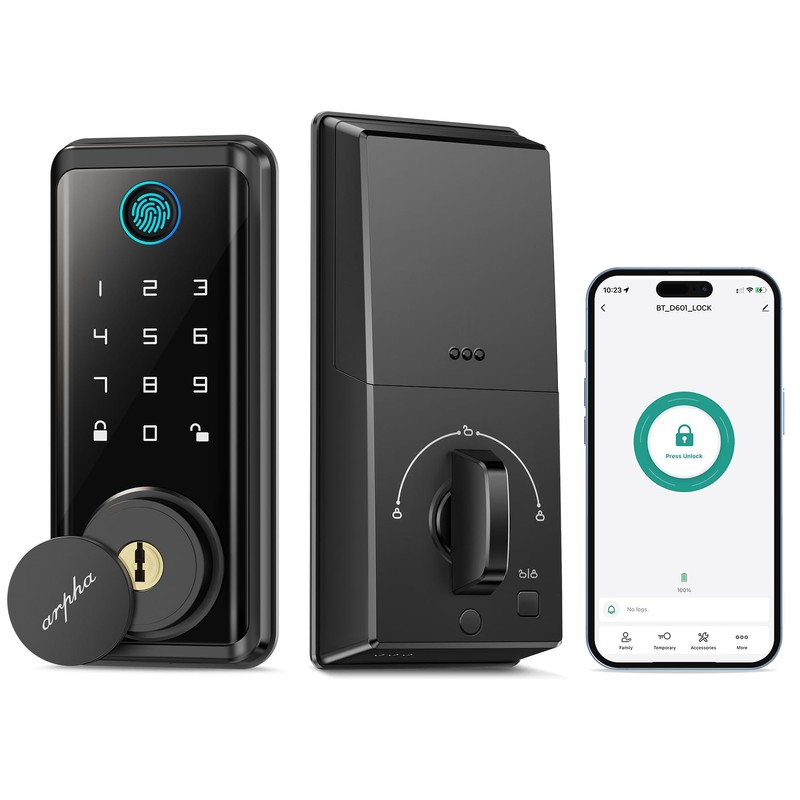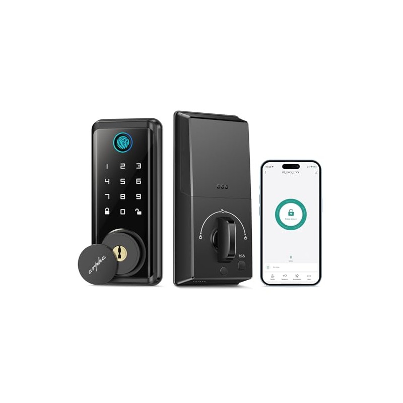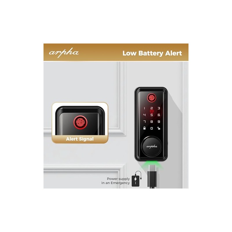 - 5 Ways to Unlock: Arpha smart door lock could be unlocked via APP Access, Fingerprint Touch ID, Keypad Code, Traditional Key Unlock. Never get locked out again with multiple secure ways to access your home.