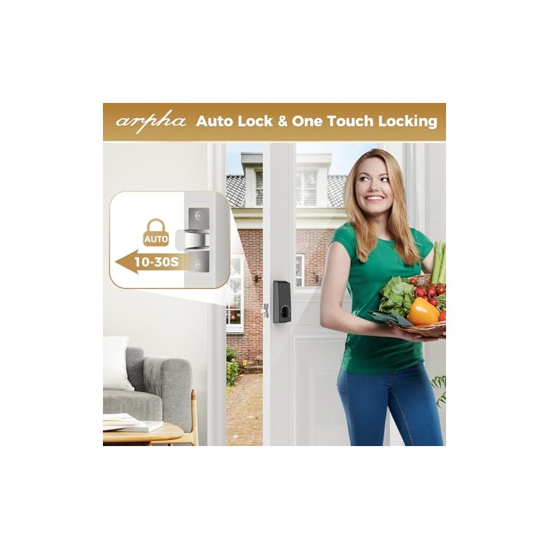 - APP Control: With the Arpha app, you can share and customize temporary passwords with others, monitor the power of the lock and check unlock/lock records in real time. (ASIN: B09YHFG933) Arpha Gateway required for remote control this keyless entry door lock.