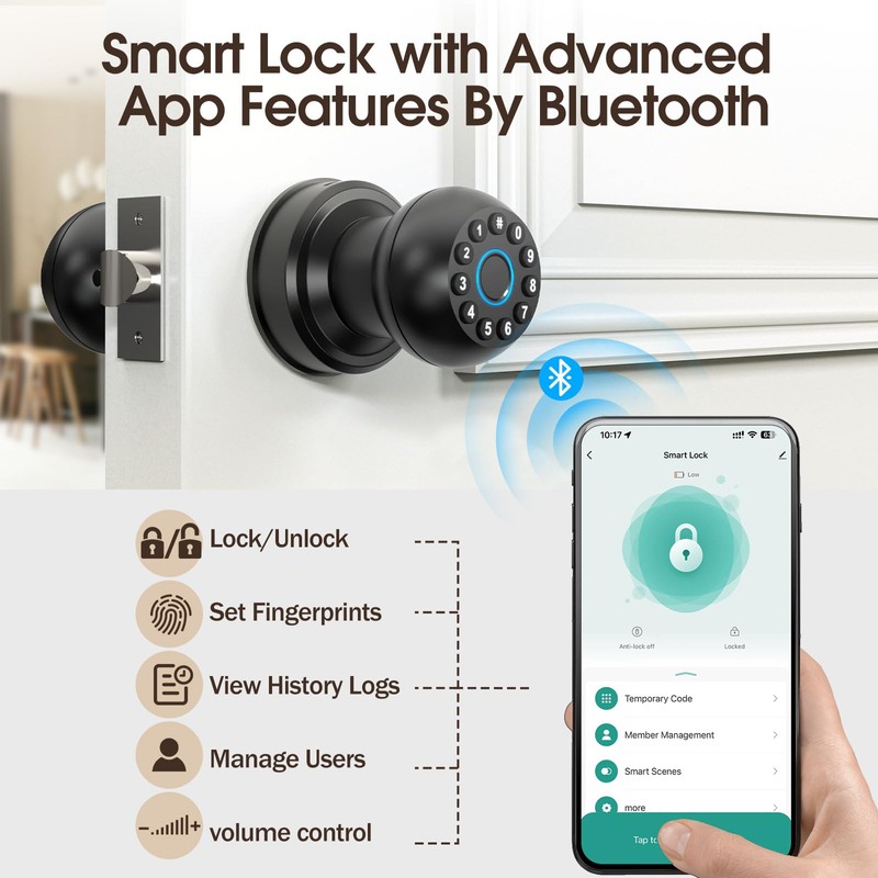 - 【Smarter & More Convenient】The door lock has biometrics and supports App control. Fingerprint and password methods can open the door faster and more securely.APP control function helps you easily share access, manage fingerprints and passwords, unlocking records, automatic locks, keep track of unlock logs,and create permanent or temporary access codes for family members, guests, deliveries, or housekeepers.