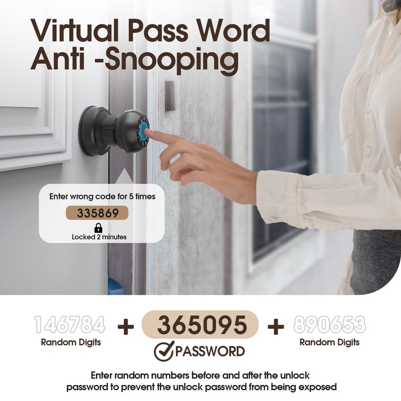 - 【Advanced Fingerprint Recognition Technology】Equipped with a cutting-edge high-precision fingerprint sensor, our system delivers lightning-fast recognition in just 0.1 seconds and unlocks your door within 1 second for seamless keyless entry. The lock supports up to 100 fingerprints and 100 unique access codes, enabling secure and flexible access management for families, teams, or guests. Your privacy is our priority—all sensitive data (including fingerprints and access codes) is stored exclusively on the lock's local memory and never transmitted to the cloud. This robust design guarantees the utmost protection of your personal information and digital security.