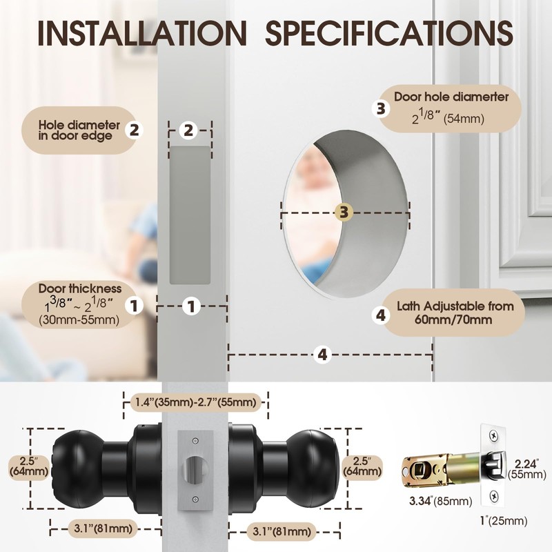 - 【Effortless Installation】 Designed to fit most American doors, our fingerprint door lock is easy to install.This door lock can be easily installed with a screwdriver in just a few minutes.The door handle continues the classic style design, whether used as a bedroom door lock with code or a keypad door knob for your garage, this lock guarantees long-lasting performance and security for your loved ones.