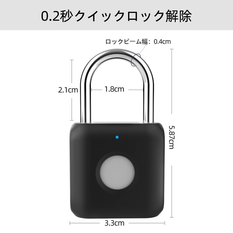 - (Lightweight, Portable, Convenient) Compact size keyless fingerprint padlock that can be carried anywhere and anytime. The mini size fingerprint padlock weight is 62g, the size is 1.2*0.6*2.3inch, very lightweight and convenient to carry. Perfect for schools, offices, gym lockers, luggage, comforter cabinets, tool boxes, and more