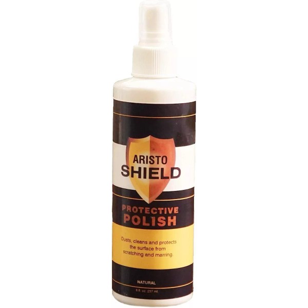Aristo Shield is a water-based polish that does not contain harsh additives and is safe to use on all fine wood furniture. It is designed to clean, polish, and protect by making the wood surface more scratch resistant while removing fingerprints and smudges with ease. With regular use, the anti-static additive helps to reduce dust build-up, making it perfect for dusting. Aristo Shield will not dull the shine of your furniture and is made in America. Trust Aristo Shield to safely clean and maintain your wood furniture with a gentle touch.