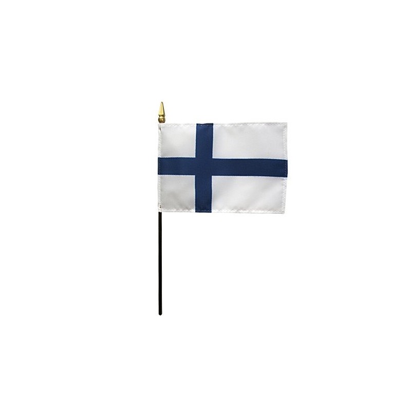 Finland International Hand Held Desk Table Top Polyester Flag 4" X 6" on 10" Black Plastic Staff with Gold Spear Tip (12 Pack)